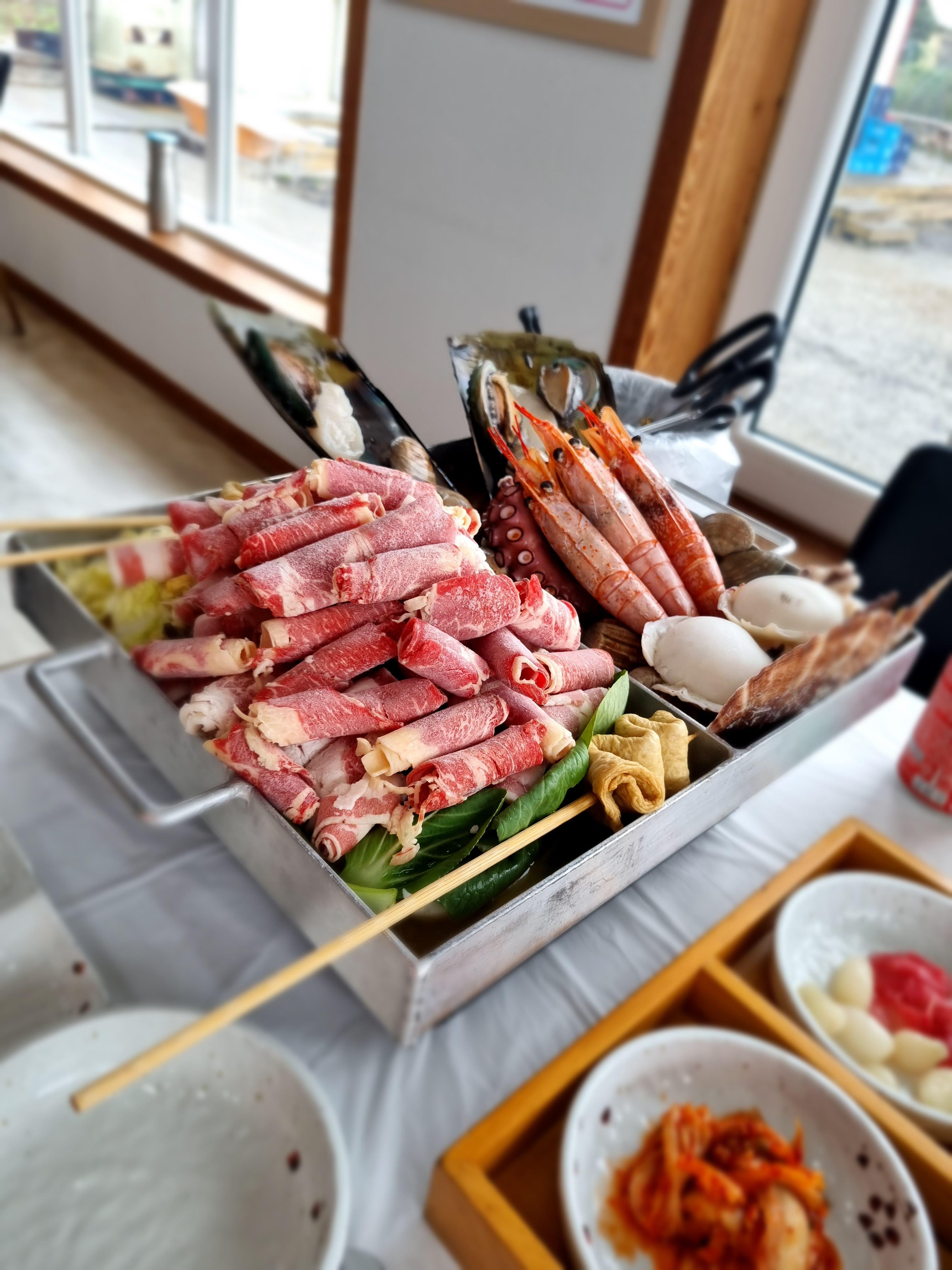 고기가 먼저 익으니 고기 먼저 먹으라고 설명도 해주셨어요.